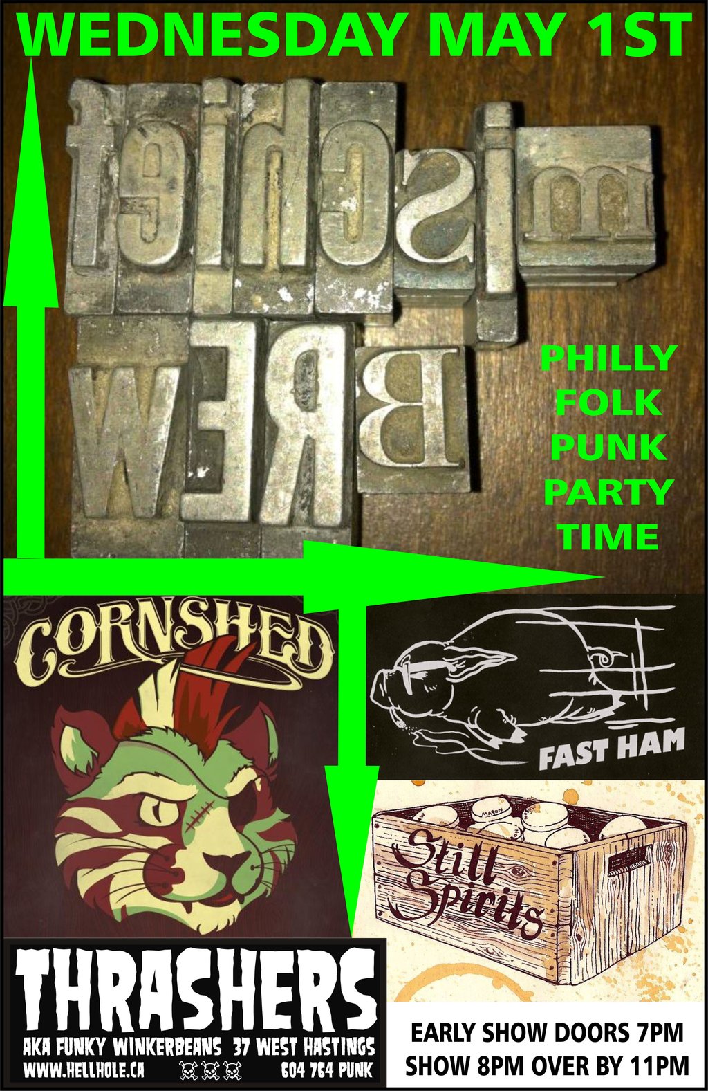 EARLY FOLK PUNK SHOW!! 7PM - 11PM!: Mischief Brew, Cornshed, Fast Ham, The Still Spirits,   @ Funky Winker Beans May 1 2013 - Jan 8th @ Funky Winker Beans