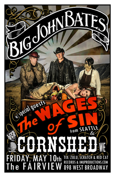 . Friday, May 10th IMU presents BIG JOHN BATES w/ The WAGES OF SIN (from Seattle) & CORNSHED @ The Fairview, 898 West Broadway . Doors 9pm / $10 Adv Tix: Zulu, Red Cat and www.imuproductions.com/tix . $12 cover at the door