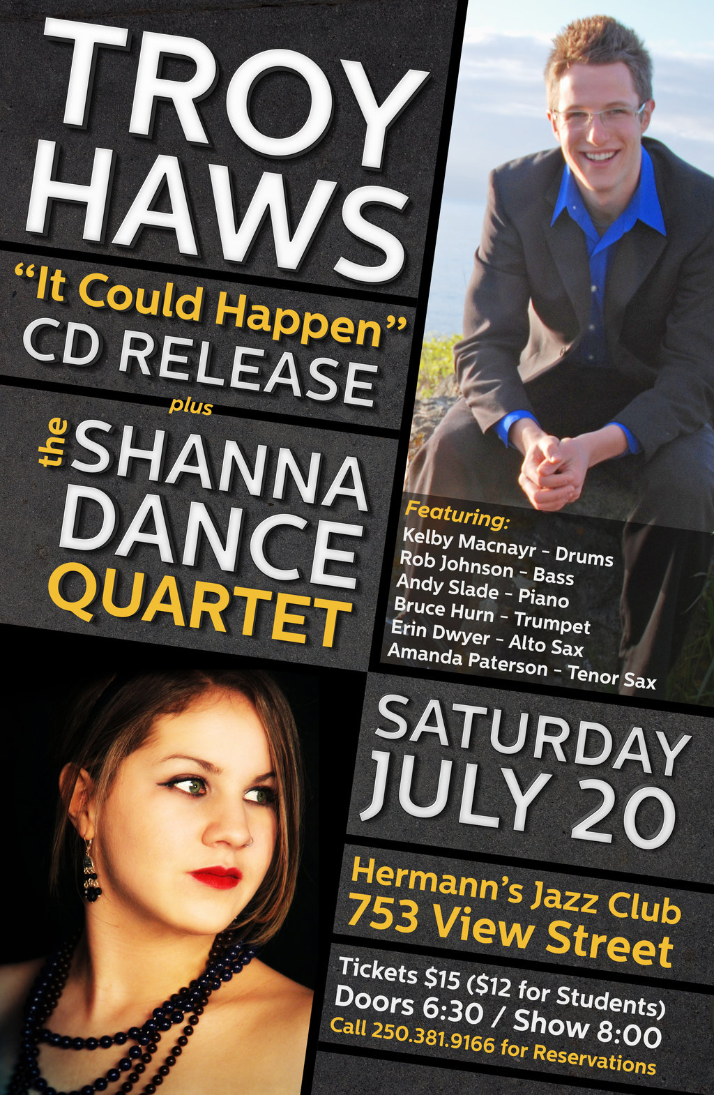 A double bill: Troy Haws releases his debut EP, It could Happen. This assortment of latin, swing and jazz standards is followed by the Shanna Dance Quartet. Shanna Dance continues with a set of R&B, blues, Jazz and other funky tunes as a follow up to Jazzfest 2013.