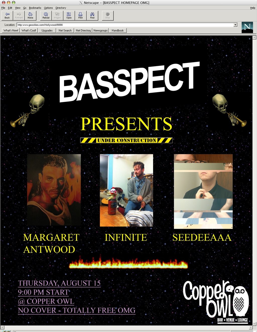 BASSPECT low end fueled dance paaaarty: Margaret Antwood, seedeeaaa, INFINITE @ Copper Owl Aug 15 2013 - Jan 2nd @ Copper Owl