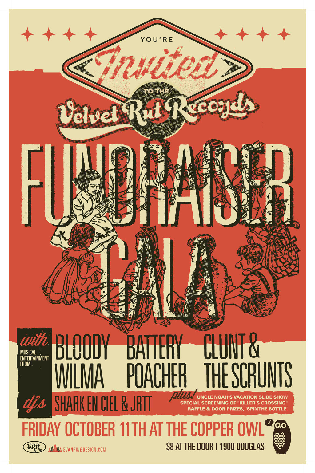 Velvet Rut Records Fundraiser Gala: Bloody Wilma, Battery Poacher, Clunt & the Scrunts, DJ Shark en Ciel, DJ JRTT @ Copper Owl Oct 11 2013 - Jan 2nd @ Copper Owl