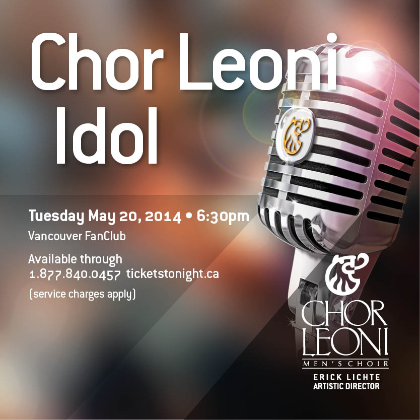 Eight of Chor Leoni’s finest singers will battle for karaoke supremacy in this hilarious new fundraiser event. Hosted by our new Artistic Director Erick Lichte and three mystery celebrity judges, Chor Leoni Idol will be a riotous night which will help support our mission of male choral music excellence. Hosted at the fabulous Fanclub in downtown Vancouver, our loyal patrons will not only hear Chor Leoni sing, but will help crown the next Chor Leoni Idol with their votes of financial support. Come for dinner, come for a drink, vote as often or as much as you like. Chor Leoni Idol puts the “fun” back in fundraiser!