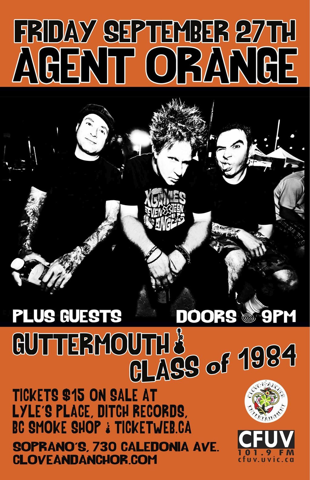 Friday September 27th catch California Legends GUTTERMOUTH and AGENT ORANGE with guest locals CLASS OF 1984!