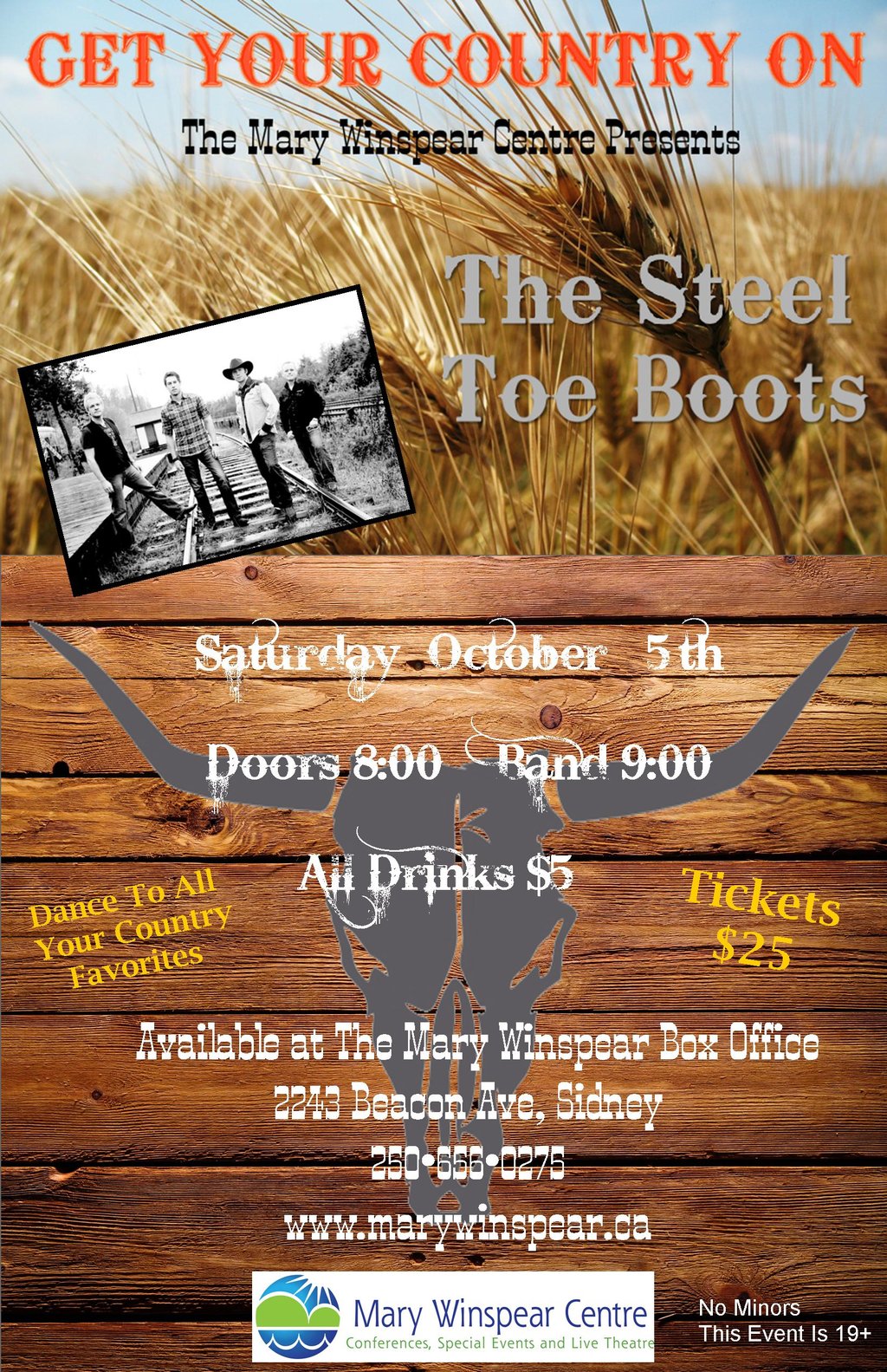 Two-step the night away to country hits by Brooks & Dunn, Brad Paisley, Alan Jackson, Eric Church, Florida Georgia Line, Jason Aldean, Keith Urban, Kenny Chesney, Miranda Lambert, Tim McGraw & many more! All preformed by Vancouver based The Steel Toe Boots, fresh off their performance on the main stage of Sunfest opening for Jerrod Niemann and Thompson Square.