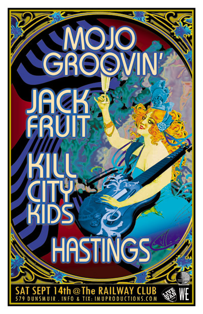 . Saturday, September 14th IMU presents MOJO GROOVIN', JACKFRUIT, HASTINGS & KILL CITY KIDS @ The Railway Club, 579 Dunsmuir . Show 10pm / $10 cover at the door or purchase advance tickets online @ http://www.imuproductions.com/tix