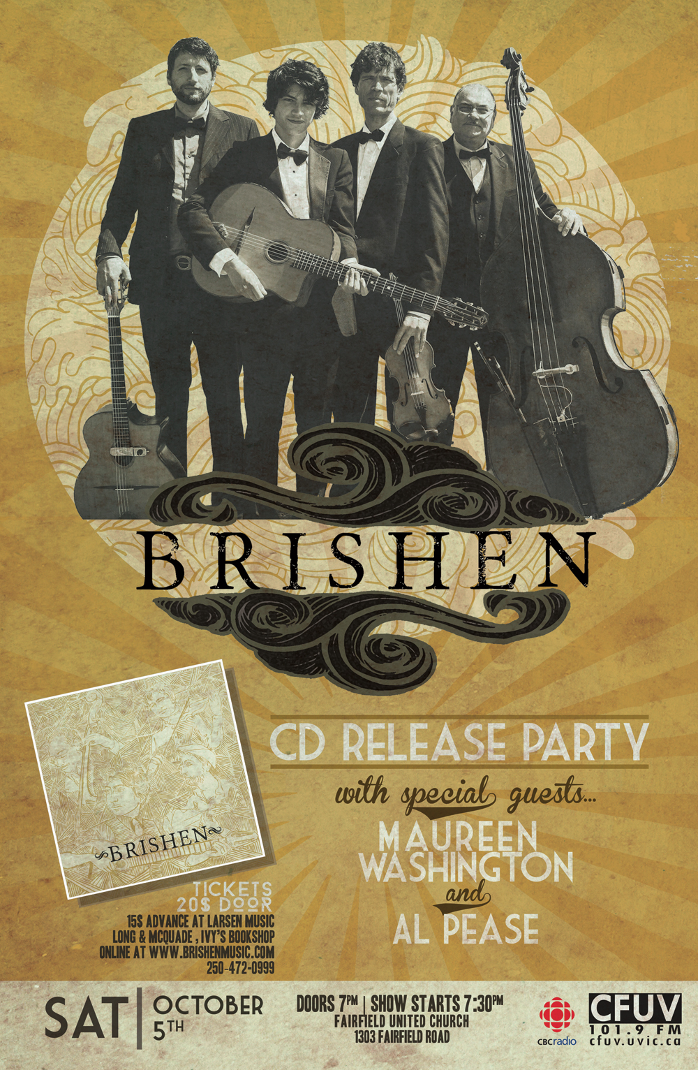 Brishen, Victoria's hottest gypsy jazz ensemble featuring Quinn Bachand, Richard Moody, Reuben Wier and Joey Smith, celebrate the official release of their new album, with special guests Maureen Washington and Al Pease!