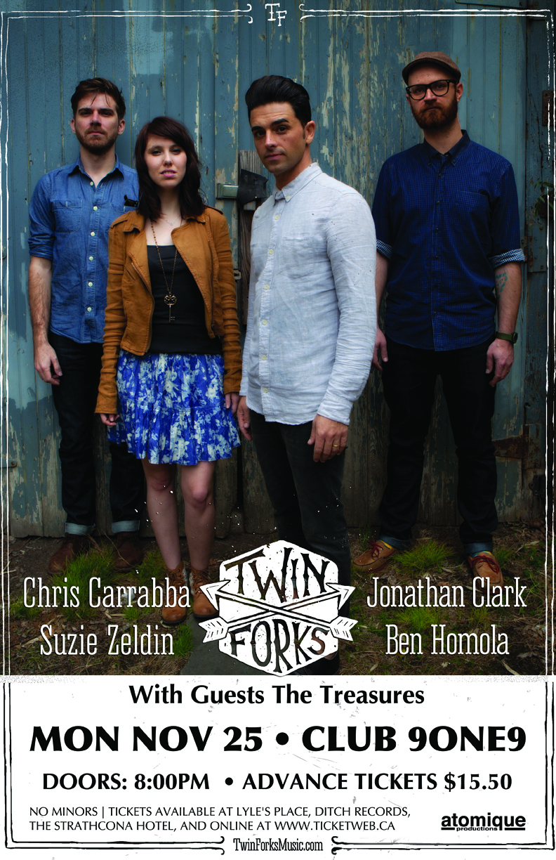Due to unforeseen circumstances, Twin Forks' show at Club 9ONE9 on Monday, November 25th has been cancelled. Refunds available at point of purchase.