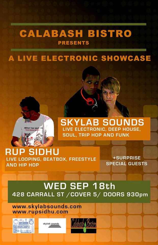 A live electronic showcase: Skylab Sounds, Rup Sidhu @ Calabash Bistro Dec 31 1969 - Jan 10th @ Calabash Bistro