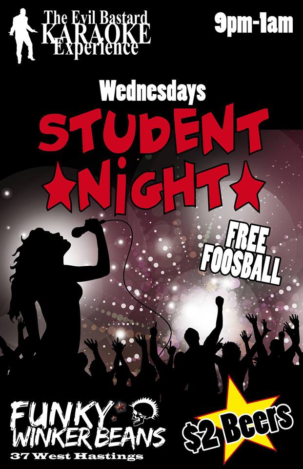 STUDENT NIGHT KARAOKE~~: The Evil Bastard KARAOKE Experience @ Funky Winker Beans Oct 23 2013 - Dec 14th @ Funky Winker Beans