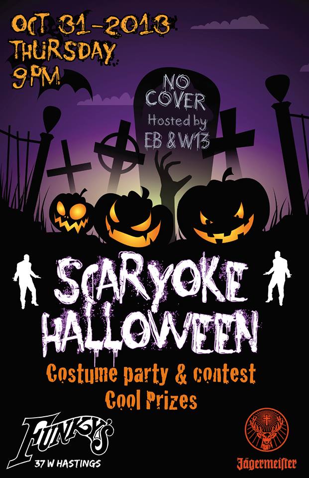 FREE HALLOWEEN EVENT!!~~: HALLOWEEN SCARYOKE @ Funky Winker Beans Oct 31 2013 - Jan 13th @ Funky Winker Beans