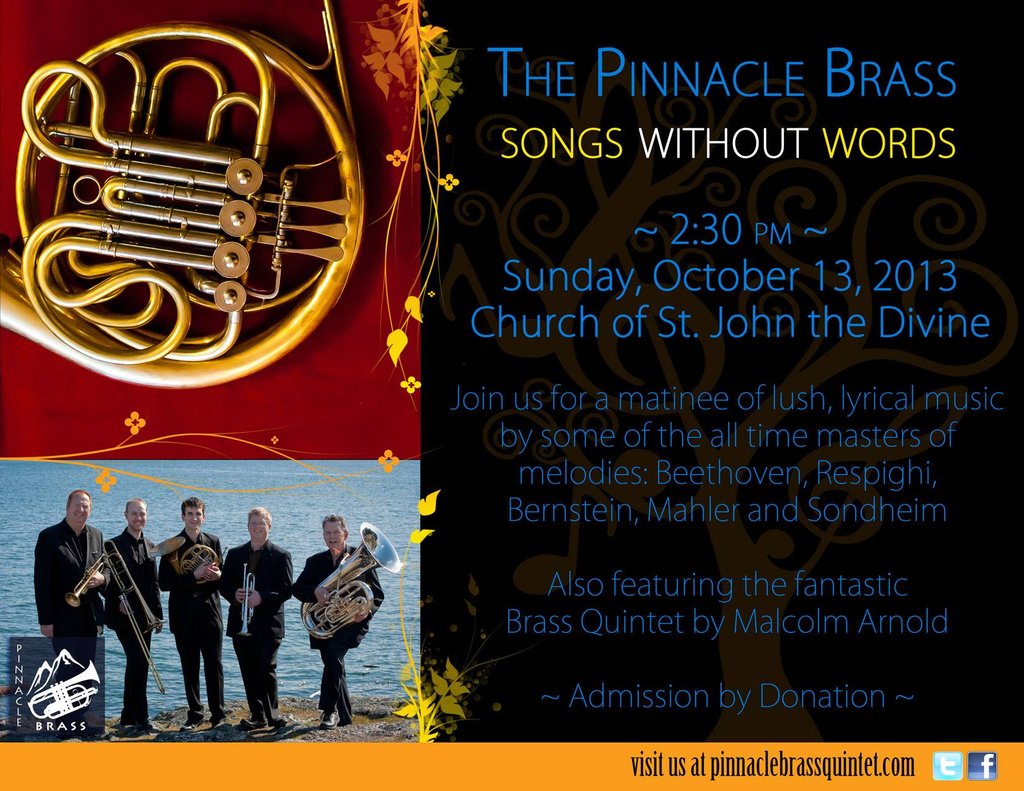 The Pinnacle Brass Quintet @ St. John The Divine Oct 13 2013 - Jan 7th @ St. John The Divine