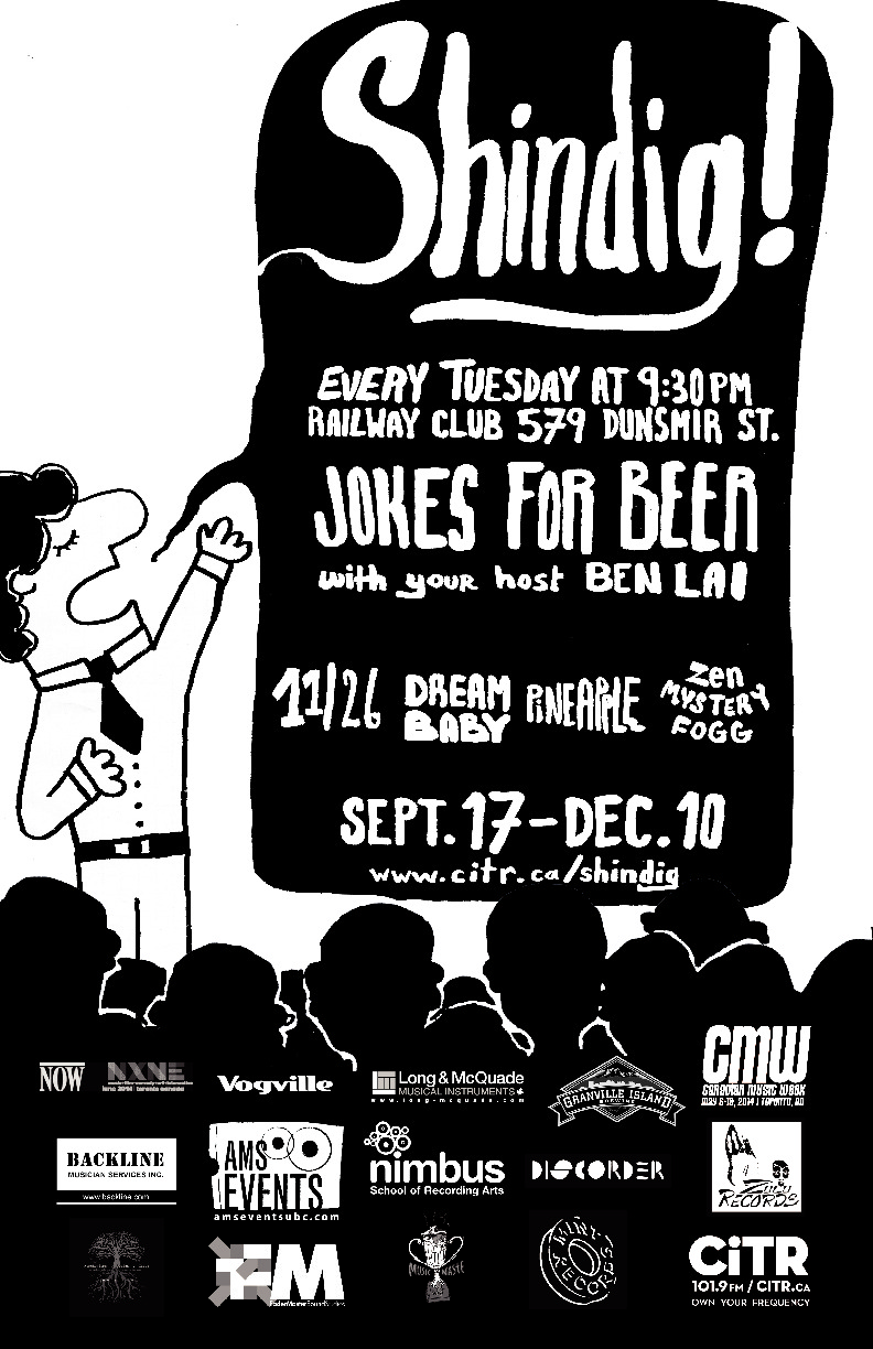 SHiNDiG is CiTR’s annual music competition that continues to offer the freshest underground music in a contest that spans 13 weeks. Bands and musicians of all styles duke it out to grab one of three prize-winning top slots. With three great bands each night and free audience prizes, what more can you ask for?