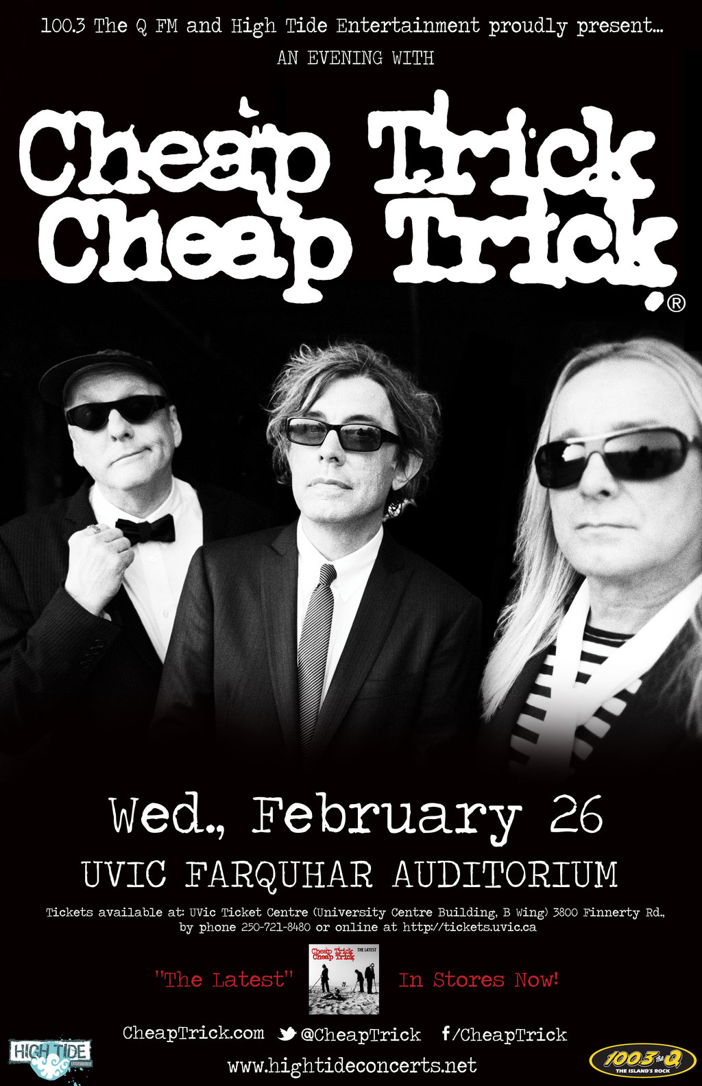 Physical tickets at: UVic Ticket Centre (University Centre Building, B Wing) 3800 Finnerty Rd., by phone 250-721-8480, or online at http://tickets.uvic.ca/, VIP & Meet'N'Greet packages available Dec. 2, Packages only available in person or over the phone at UVic Ticket Centre, The discount code for the balcony seats is: CHEAP