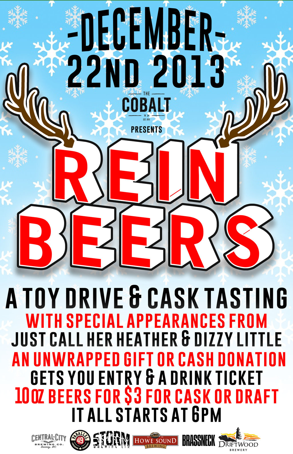 Sunday December 22nd marks The Cobalts first ever cask tasting and christmas toy drive. Starting at 6pm, entrance is an unwrapped gift or cash donation which gets you a drink ticket.