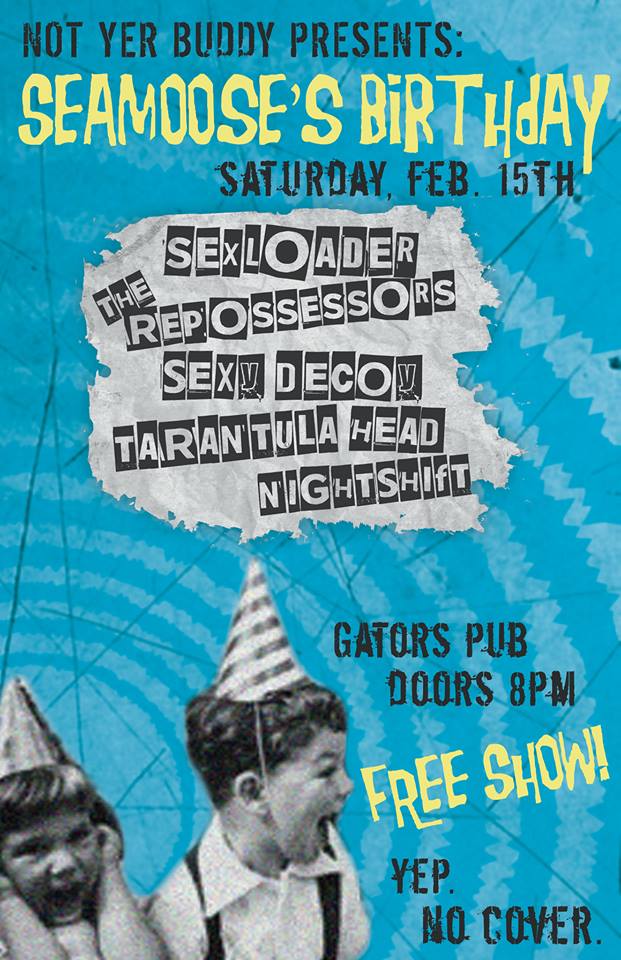 FREE SHOW & BDAY BASH: Sexloader, Night Shift 1970s, Tarantula Head, Sexy Decoy, The Repossessors @ Gator's Pub Feb 15 2014 - Jan 2nd @ Gator's Pub