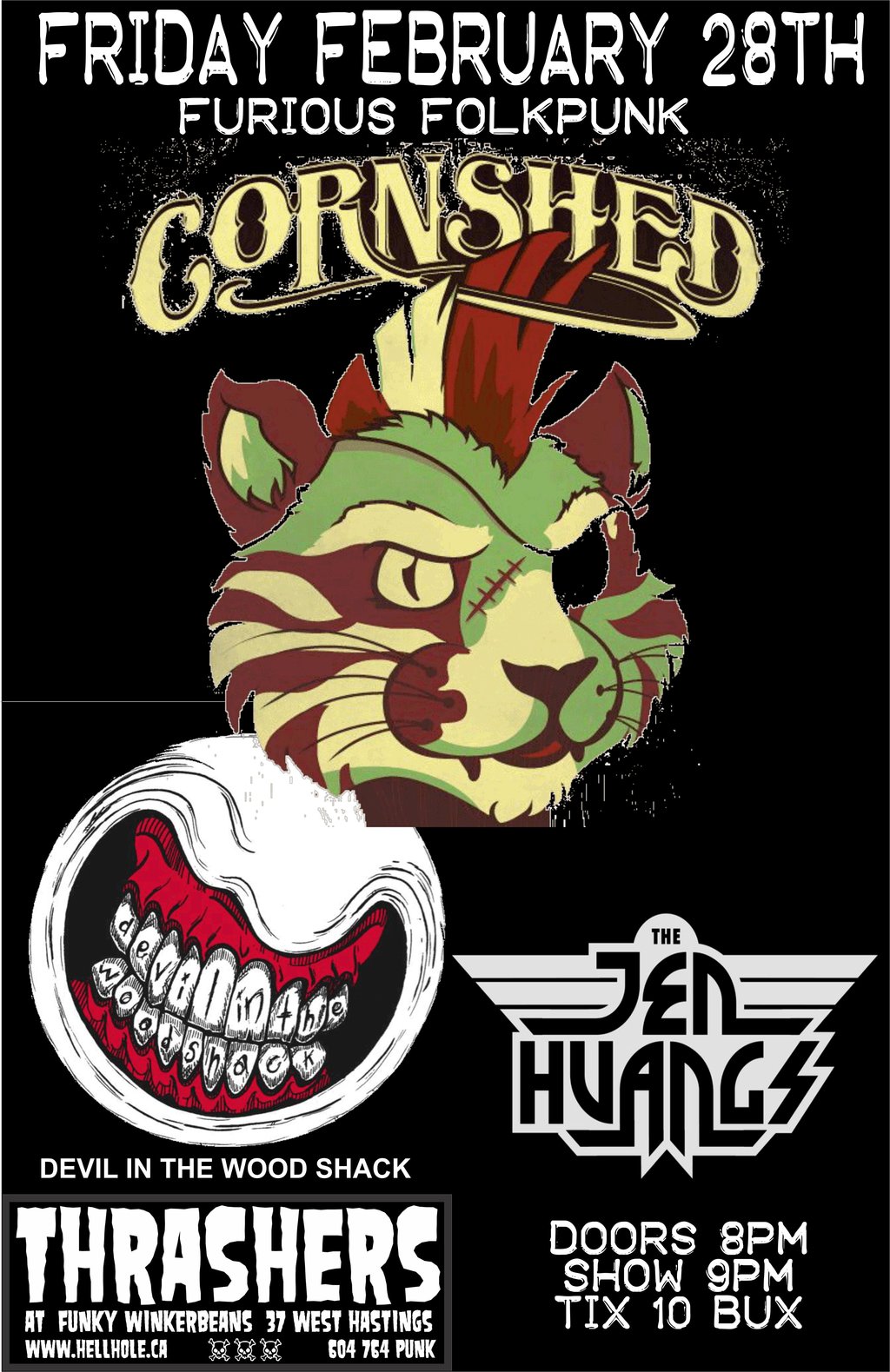 FURIOUS FOLKPUNK!!~~: Cornshed, Devil in the Woodshack, The Jen Huangs @ Funky Winker Beans Feb 28 2014 - Jan 8th @ Funky Winker Beans