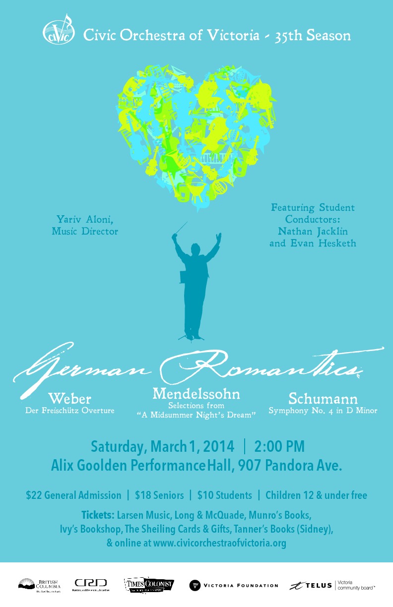 Join us at 2:00 PM on March 1, 2014 for a captivating afternoon of German Romantic music, including: