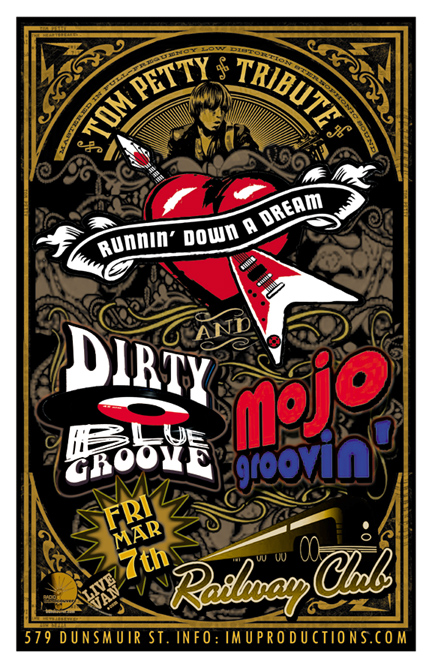 . Friday, March 7th IMU presents RUNNIN' DOWN A DREAM ~ Tom Petty Tribute w/ DIRTY BLUE GROOVE & MOJO GROOVIN' @ The Railway Club, 579 Dunsmuir . Show 10pm / Purchase advance tickets online @ http://www.imuproductions.com/tix
