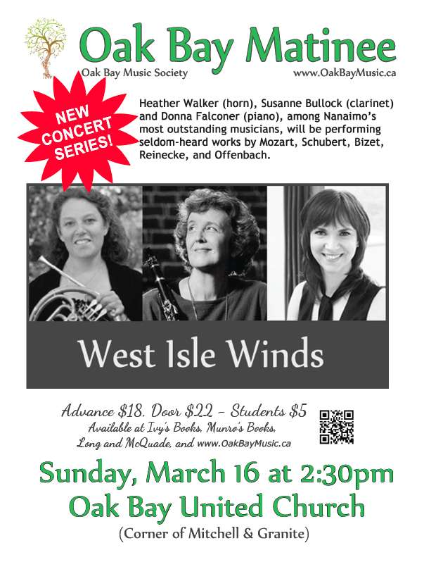 The Oak Bay Matinee concert series features West Isle Winds, a group of three professional classical musicians based in Nanaimo.