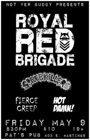 Royal Red Brigade (Regina) are on a North Western tour and this will be their only stop west of the Rockies and north of the border so don't miss it. this band is all kinds of awesome .... also, Fierce Creep has played less than a handful of times in the past 2 years and this will be their first show in that time where they will be reunited with the original singer Turf.