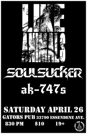 Like Animals, Soulsucker, AK-747s @ Gator's Pub Apr 26 2014 - Jan 9th @ Gator's Pub