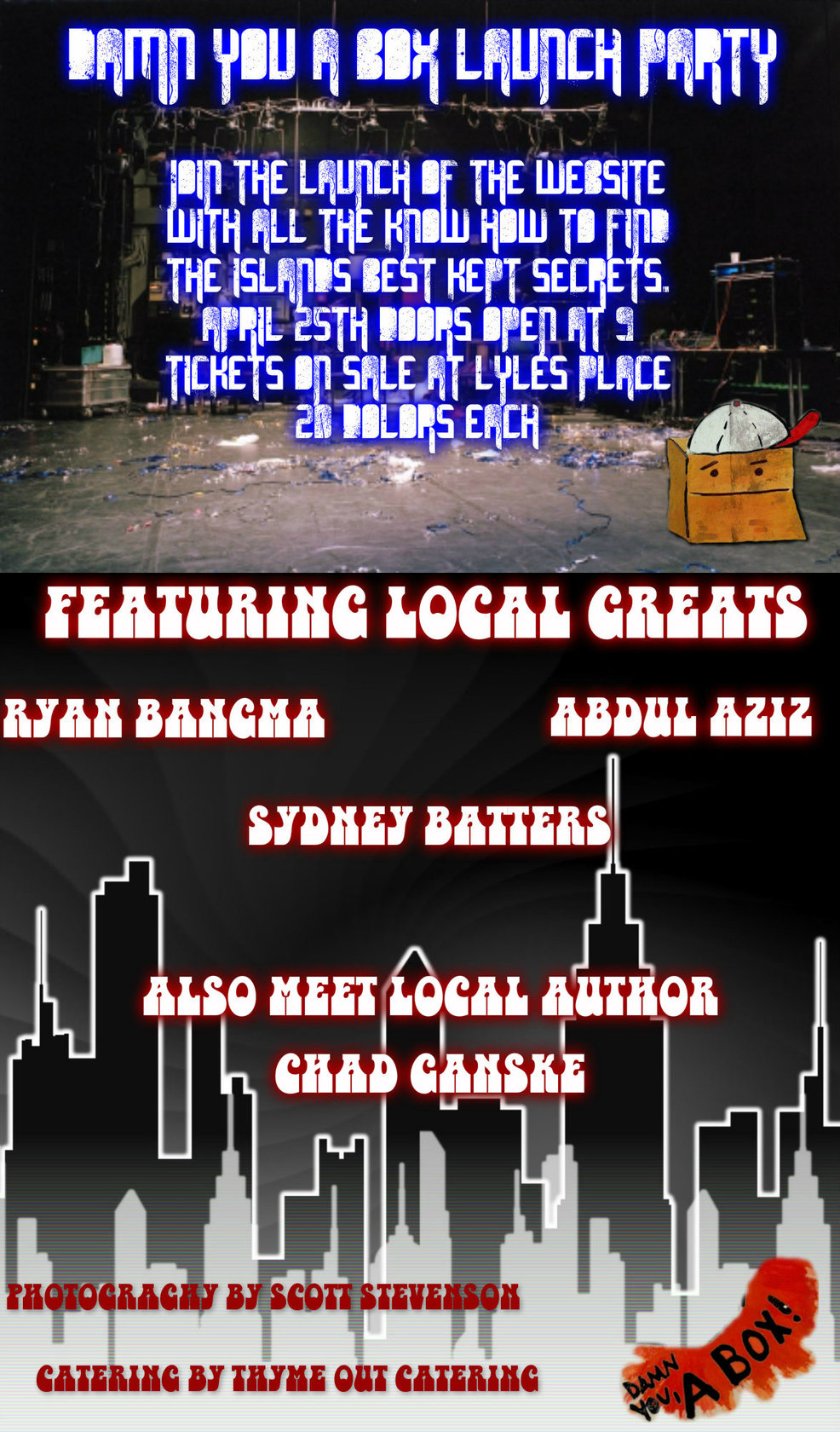 The launch of Damn You A BOX. The website for everything movies, music, comics, food and drink related and all the best local and talent the island has to offer.