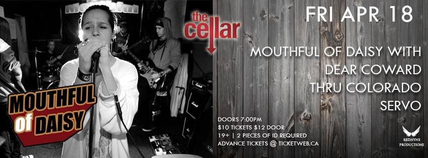 Mouthful Of Daisy, Dear Coward, Thru Colorado, Servo @ The Cellar Apr 18 2014 - Jan 2nd @ The Cellar