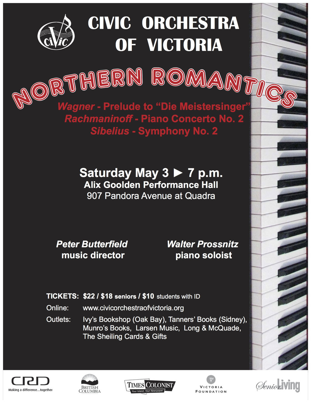 Please join us for an evening of Northern Romantic music!: The Civic Orchestra of Victoria, Walter Prossnitz @ Alix Goolden Performance Hall May 3 2014 - Jan 2nd @ Alix Goolden Performance Hall