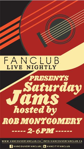 Every Saturday at FanClub, Rob Montgomery hosts an open jam. There is always a showcase band and special guest to close out the event. Come early to get great seats and sign up to participate. Great music, food and fun at the coolest club on the Granville strip!