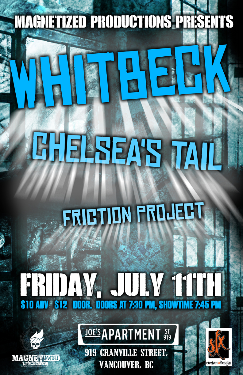 Magnetized Production Present: Friday, July 11th. Whitbeck, Chelsea's Tail & Friction Project at Joe's Apartment, 919 Granville Street, Vancouver'