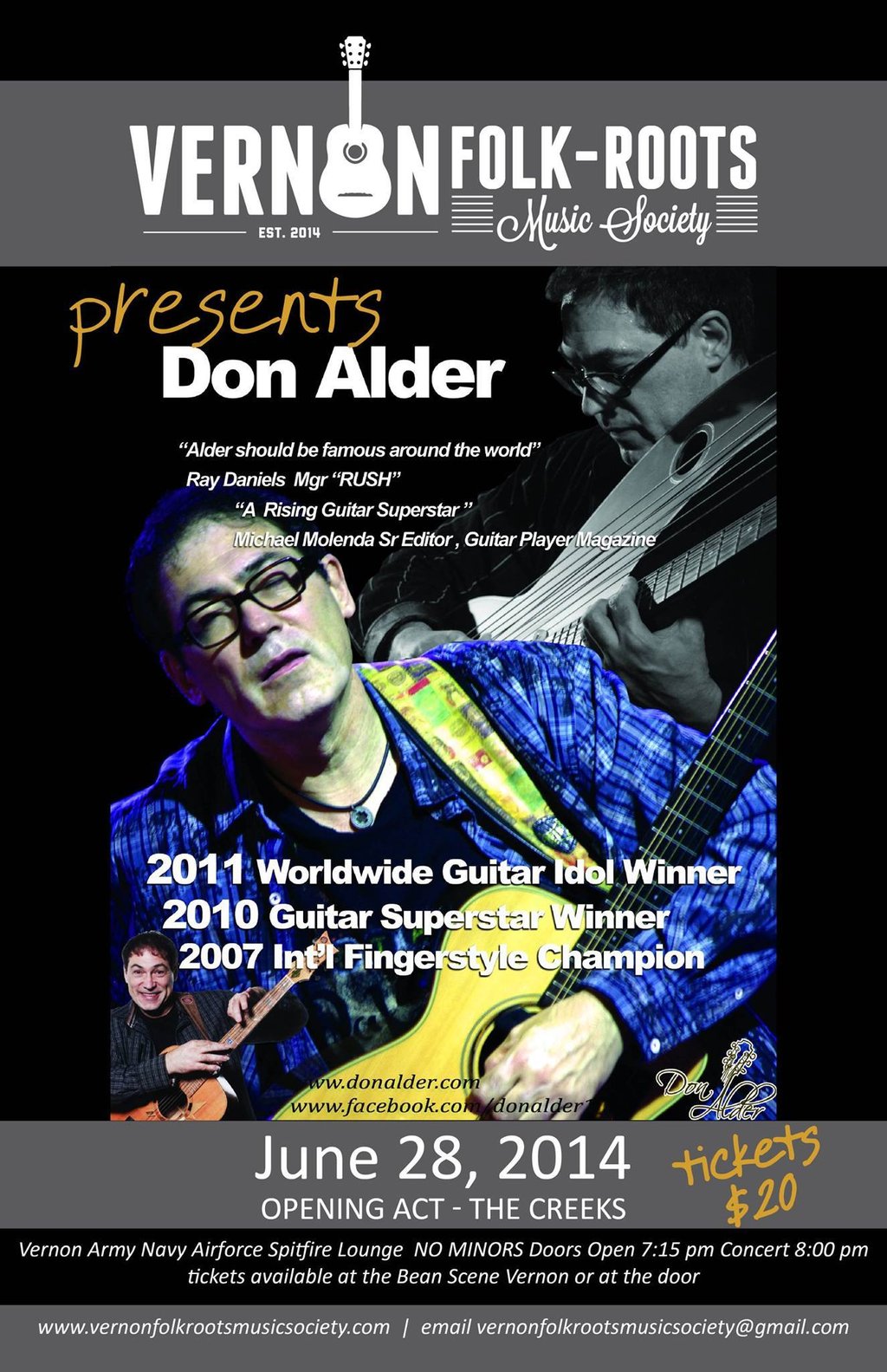 Don Alder in Concert with Opening Act "The Creeks": Don Alder, The Creeks @ Spitfire Lounge, Army Navy & Airforce Jun 28 2014 - Dec 4th @ Spitfire Lounge, Army Navy & Airforce