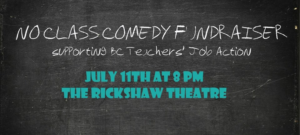 No Class Comedy Fundraiser Supporting BC Teachers' Job Action with: John Cullen, Katie-Ellen Humphries, Colin Sharp, Ivan Decker, Ben McGinnis @ Rickshaw Theatre Jul 11 2014 - Feb 3rd @ Rickshaw Theatre