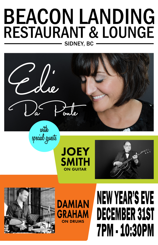 New Year's Eve! Edie sings smooth and soulful Jazz, Bossa Nova and Latin with Joey Smith on guitar and Damian Graham on drums at the seaside Beacon Landing