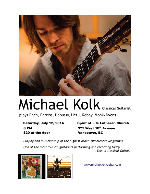 Michael Kolk (Classical Guitar) @ Spirit of Life Lutheran Church Jul 12 2014 - Feb 5th @ Spirit of Life Lutheran Church