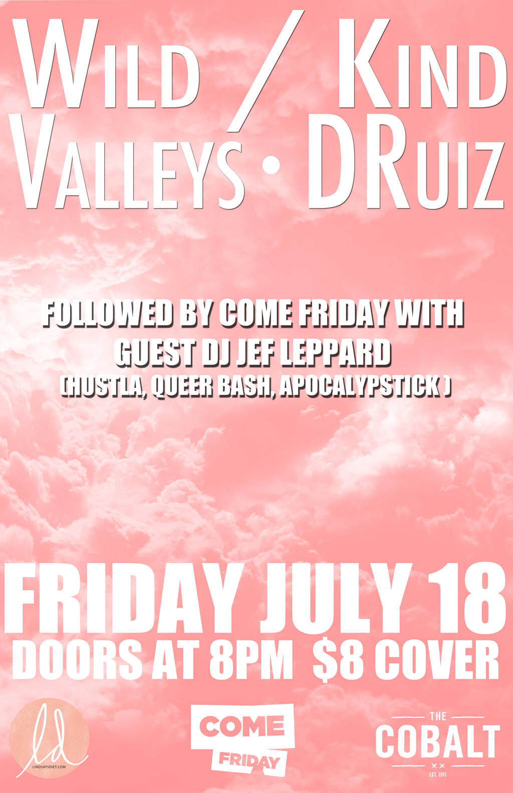 wild/kind, Valleys, DRUIZ, Come Friday with DJ Jef Leppard @ The Cobalt Jul 18 2014 - Feb 18th @ The Cobalt