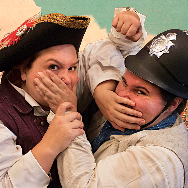 It's the chance they've been waiting for. The cast are missing in action (it's possible someone forgot to call them) so now May & Alia are going to have to do the whole of Pirates of Penzance BY THEMSELVES. What results is a light-hearted, clowning, puppeteering musical which condenses 2 Acts of Pirates into a 55min musket-blast of awesome.
