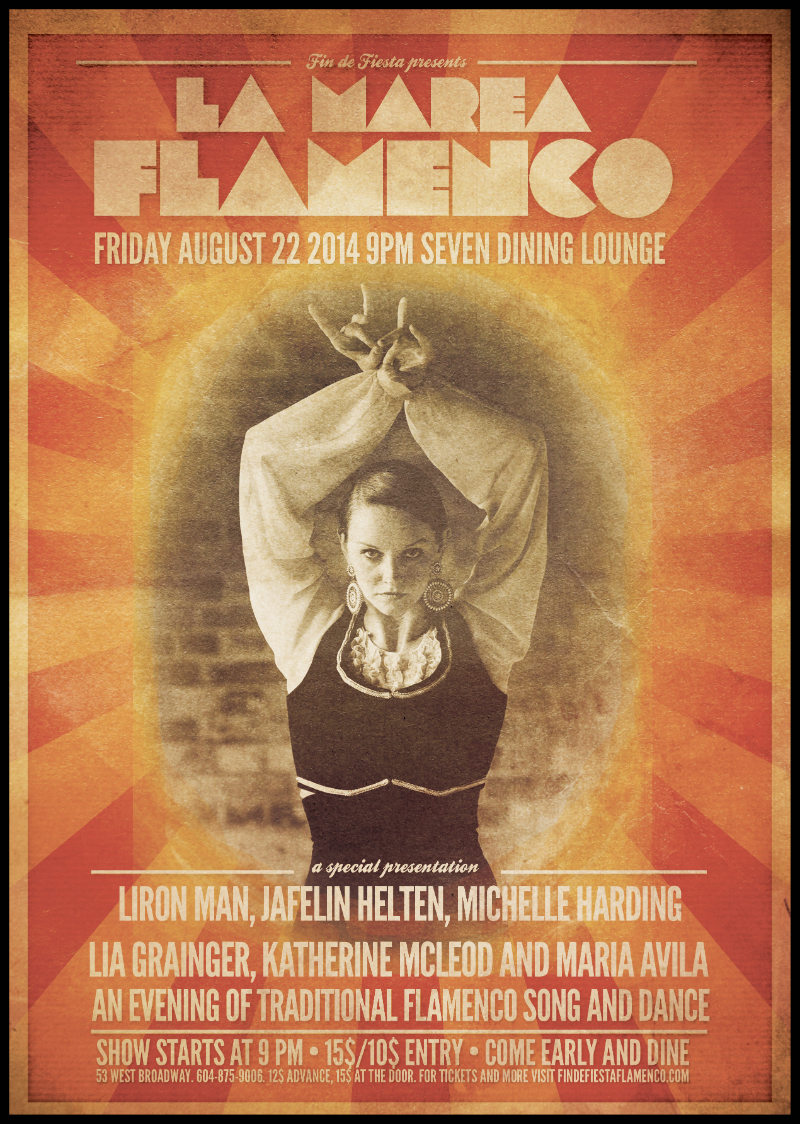 Join La Marea, a group of flamenco performers from across the country assembled for one show, this August 22 at Seven Dining Lounge. Some of us met in the streets of Seville, Spain a year ago, and some of us have been performing together for years. It's going to be a special night and a great juerga, so bring your dancing shoes...