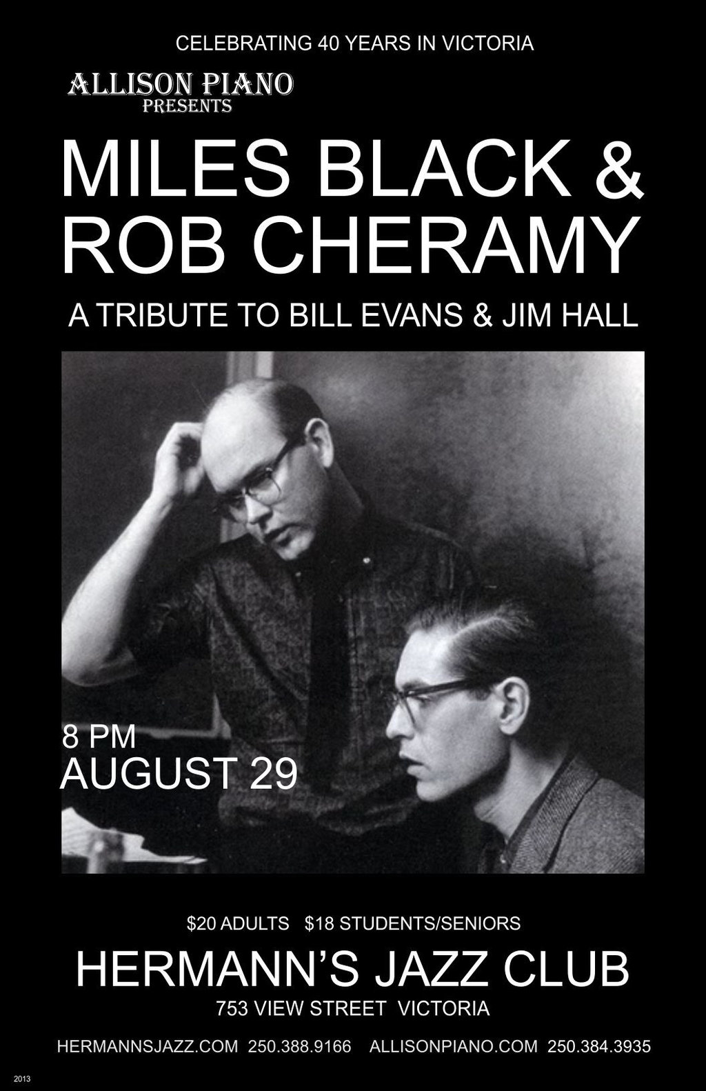 .The 1970's recordings of Bill Evans and Jim Hall, improvising together, are memorable for all Jazz fans and aspiring musicians. Miles and Rob are old friends, playing together in the 1980's at Allison Piano Concerts. Miles plays the style of Bill Evans effortlessly and with amazing artistry. Rob has sublime tone on his guitar and provides complementary support wherever the music goes. I hope you can join us for a memorable summer evening of sublime jazz.