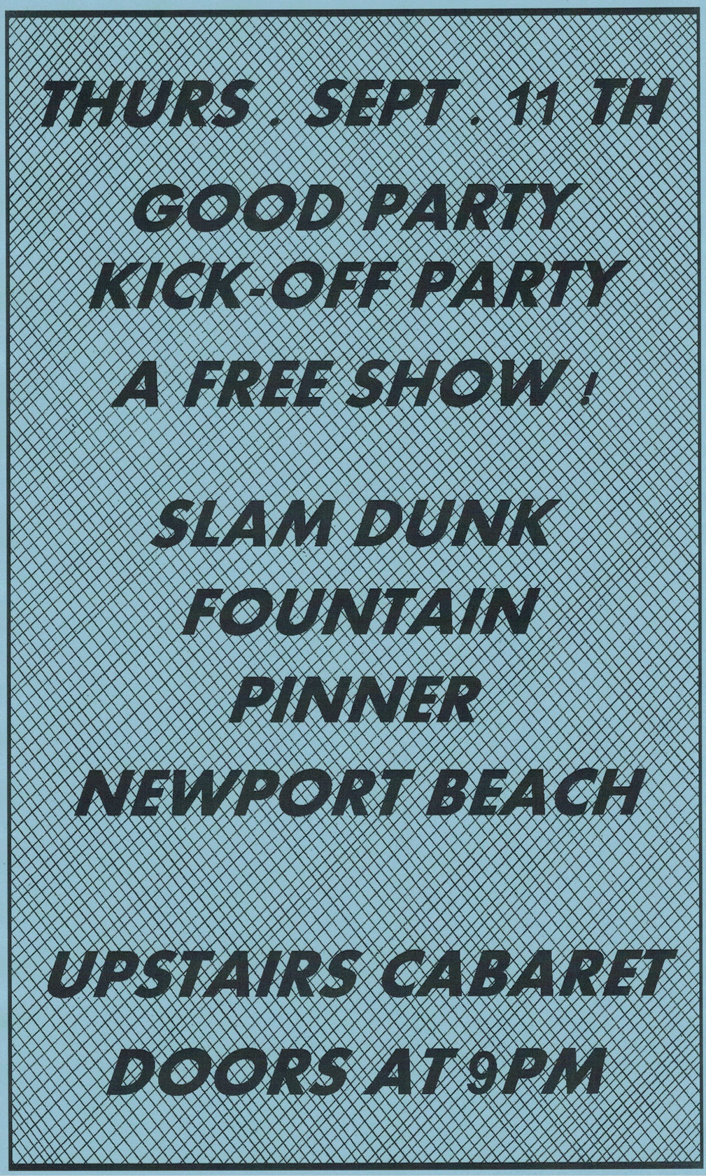 GOOD PARTY KICK-OFF PARTY: Slam Dunk, Fountain, Pinner, Newport Beach @ The Upstairs Cabaret Sep 11 2014 - Jan 9th @ The Upstairs Cabaret