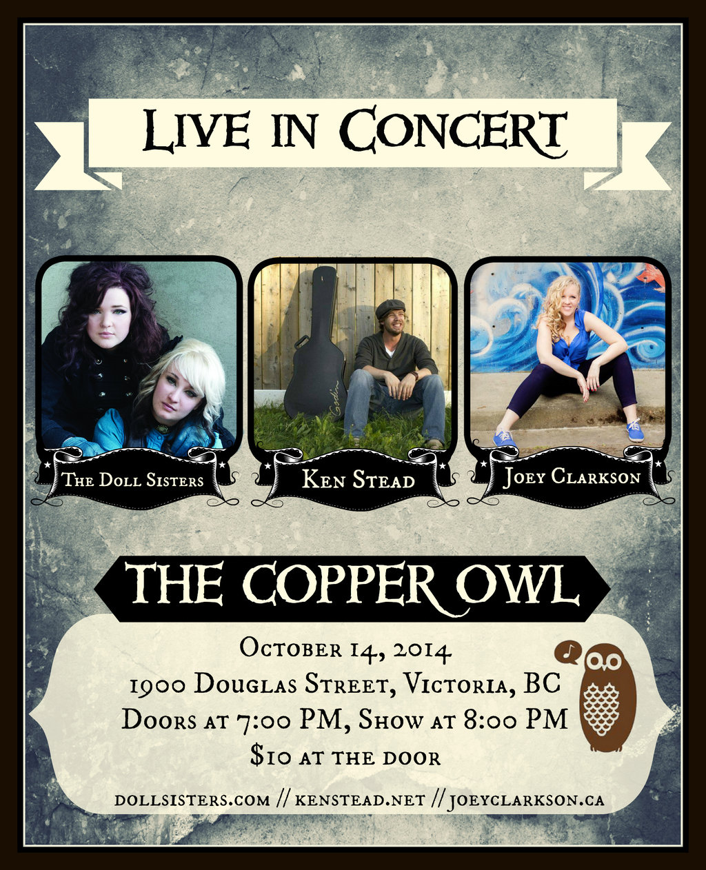 The Doll Sisters, Ken Stead, Joey Clarkson @ Copper Owl Oct 14 2014 - Jan 5th @ Copper Owl