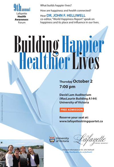 Hosted by the Lafayette String Quartet and featuring guest speaker, Dr. John Helliwell, Co-Director of the Canadian Institute for Advanced Research (CIFAR) program on Social Interactions, Identity, and Well-Being. To reserve a seat, contact [email protected]