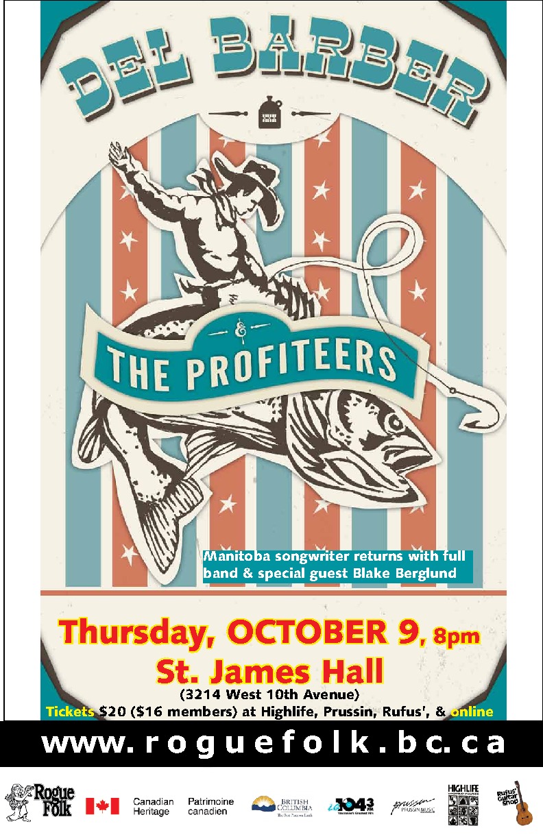 Del Barber & the Profiteers  (ft), Del Barber, Blake Berglund @ St. James Community Hall Oct 9 2014 - Feb 8th @ St. James Community Hall