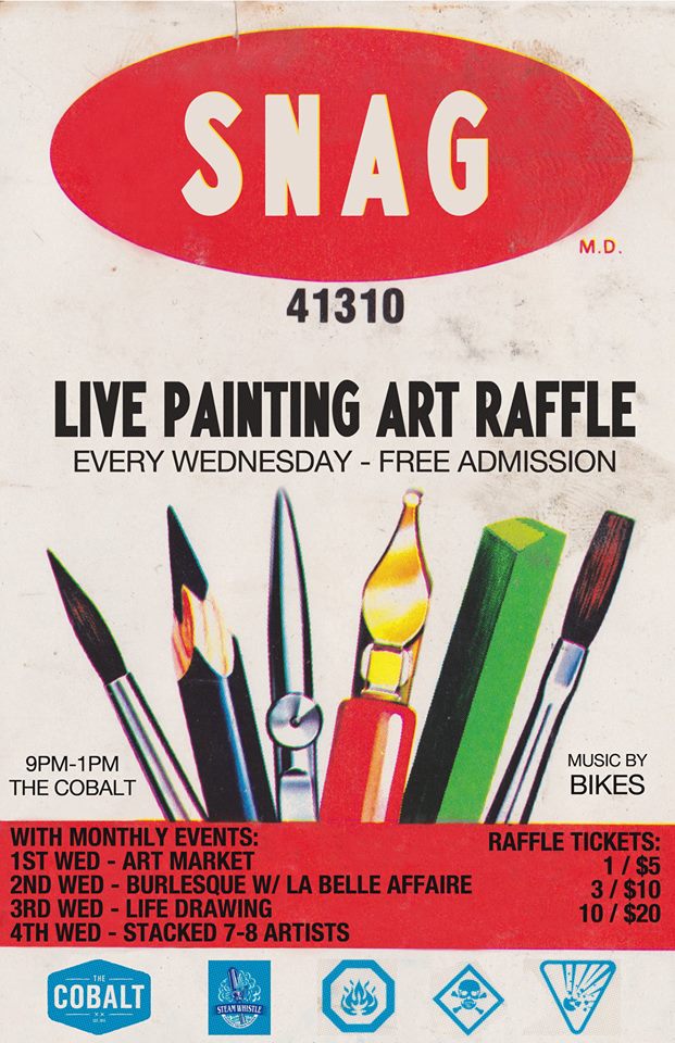 SNAG: Weekly Live Painting Art Raffle: Nick Pound  (Host), DJ Bikes @ The Cobalt Oct 8 2014 - Jan 2nd @ The Cobalt