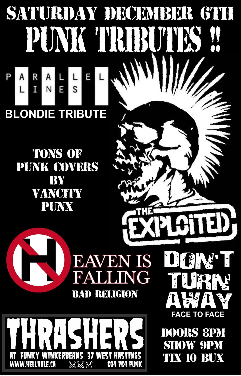 PUNK TRIBUTES~~: Parallel Lines, NO FUCKING NAME  (EXPLOITED), Heaven is Falling (BAD RELIGION), DONT TURN AWAY [FACE TO FACE] @ Funky Winker Beans Dec 6 2014 - Feb 22nd @ Funky Winker Beans