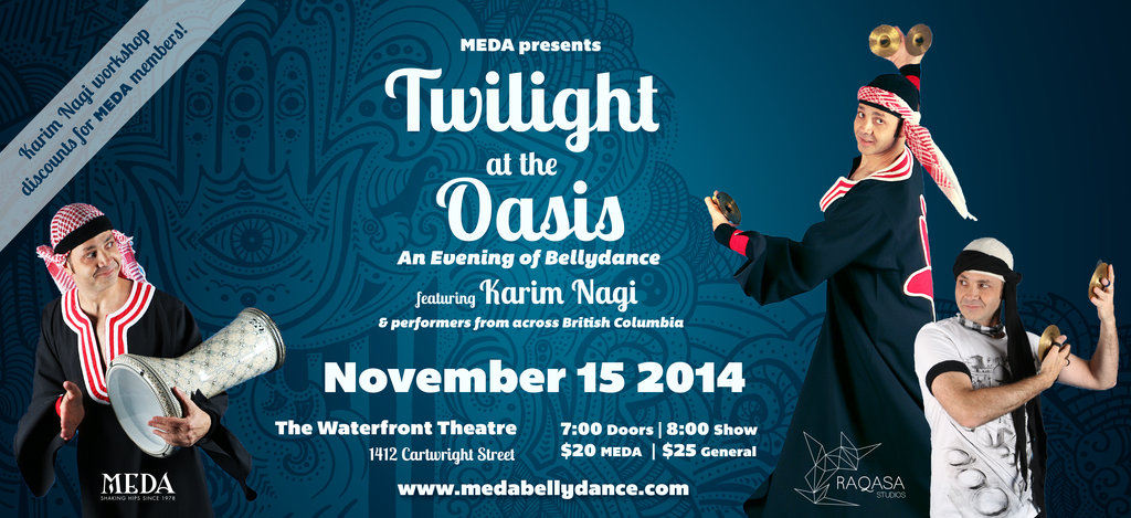Twilight at the Oasis is the Middle Eastern Dance Association's annual production that showcases Middle Eastern Dance talent from across British Columbia. This year it will be featuring internationally acclaimed Arab dancer and musician Karim Nagi.