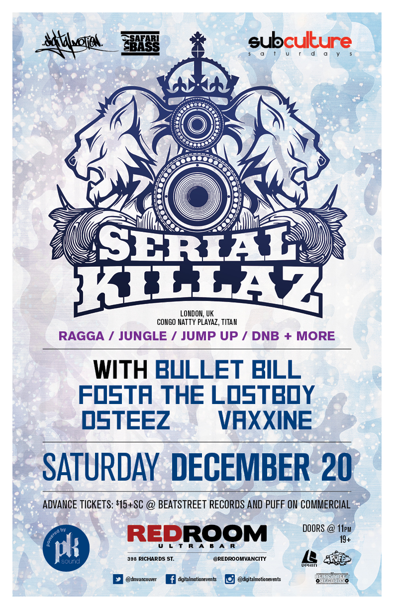 SUBculture Saturday's Feat: SERIAL KILLAZ @ The Red Room Dec 20 2014 - Dec 14th @ The Red Room