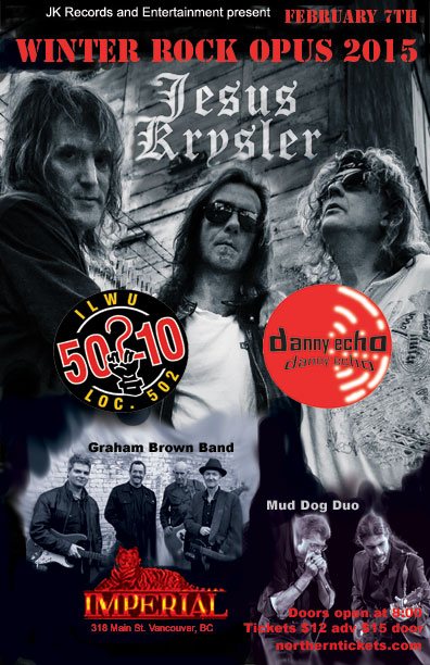 JESUS KRYSLER hosts Winter Rock Opus at the prestigious and great sounding room, The Imperial with 50210, featuring Danny Echo, Graham Brown Band and Mud Dog Duo. Burn the barn down with major riffage and groove! tickets available at Northern Tickets northerntickets.com