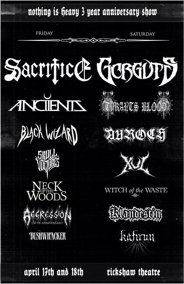 Nothing Is Heavy 3 Year Anniversary (Night 2) w/ Sacrifice and More!!!: Sacrifice, Anciients, Black Wizard, Skull Vultures, Neck of the Woods, Aggression, Bushwhacker