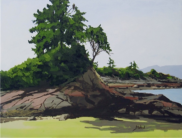 Jim McFarland's approach to landscape is quite unconventional. He engages with the subject to determine the fundamental forms present, and quickly establishes his point of view. His vision though true to the scene, often renders the subject as abstract masses of colour which harmonize to his tonal palate. A respected member of Victoria's "Al Frescoes" plein air painters, he draws inspiration from the beaches, meadows and woodlands of Vancouver Island. Born in Penticton BC, Jim now lives in Victoria. He is a signature member of the Federation of Canadian Artists and the Society of Canadian Artists. His paintings are in private and corporate collections in Canada and the USA. Jim paints his larger works in the studio but very much enjoys painting on site, en plein air, where he can capture the ever changing but real colours and light of the world around him. You may often see him on the beach, a hill side, or a farmer’s field, painting.