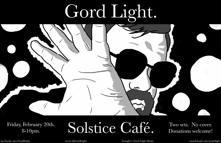Hey Victoria! It came together pretty suddenly, but welcomely! so I will be performing this Friday at Solstice Café this Friday from 8-10. I'm excited to experience a new venue (for me, obviously) and I am doubly excited to be backed up by such illustrious personnel as Adam Cleland, Corey Francis and Bryce McBride! We will be performing a bunch of my songs and rounding out the night with some sweet covers. We start at 8, do two sets and wrap it up by 10. No cover, but donations are way welcome!